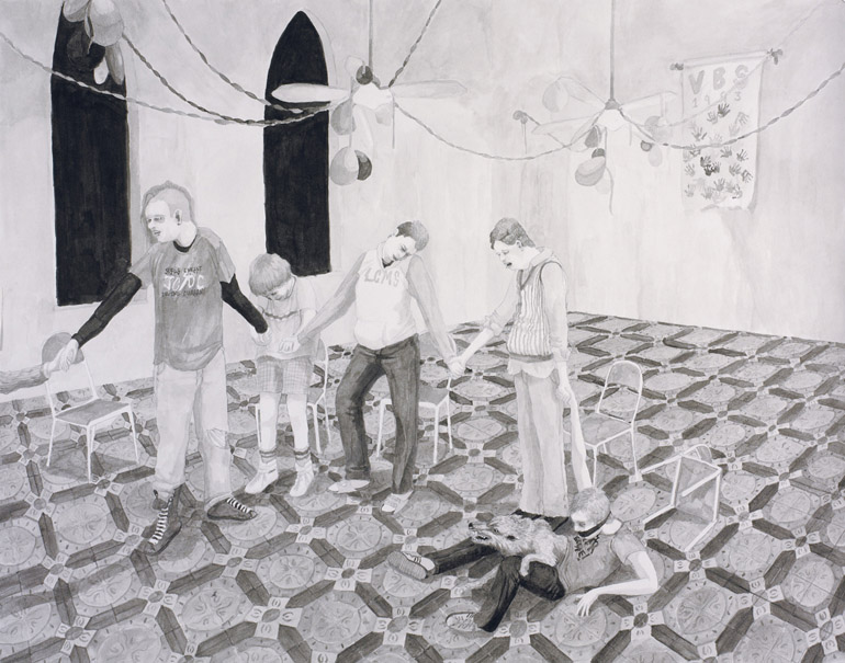 | protest to a windowless church, 2006 / graphite, ink, and watercolor on paper / 18 x 15.5 inches |